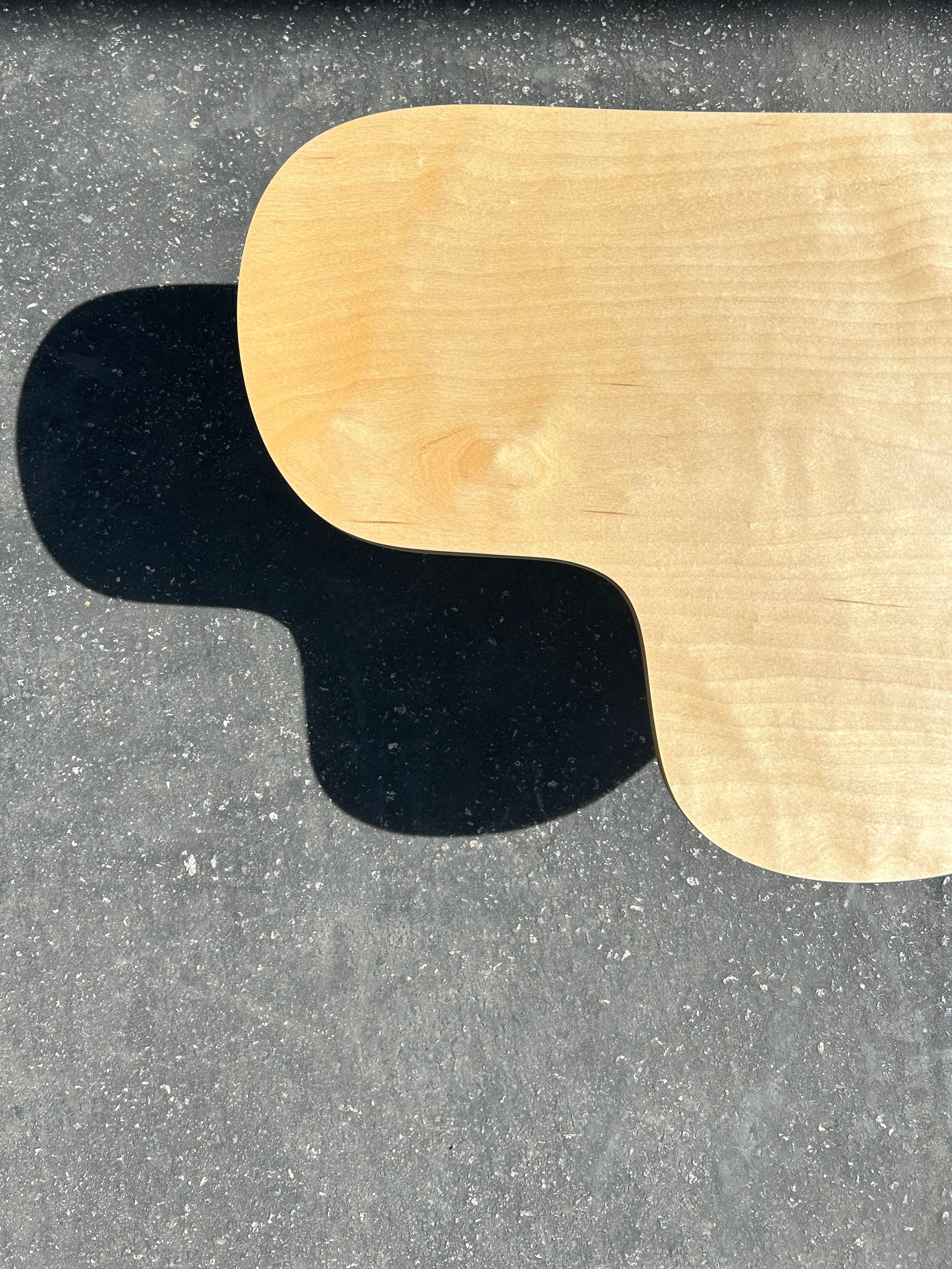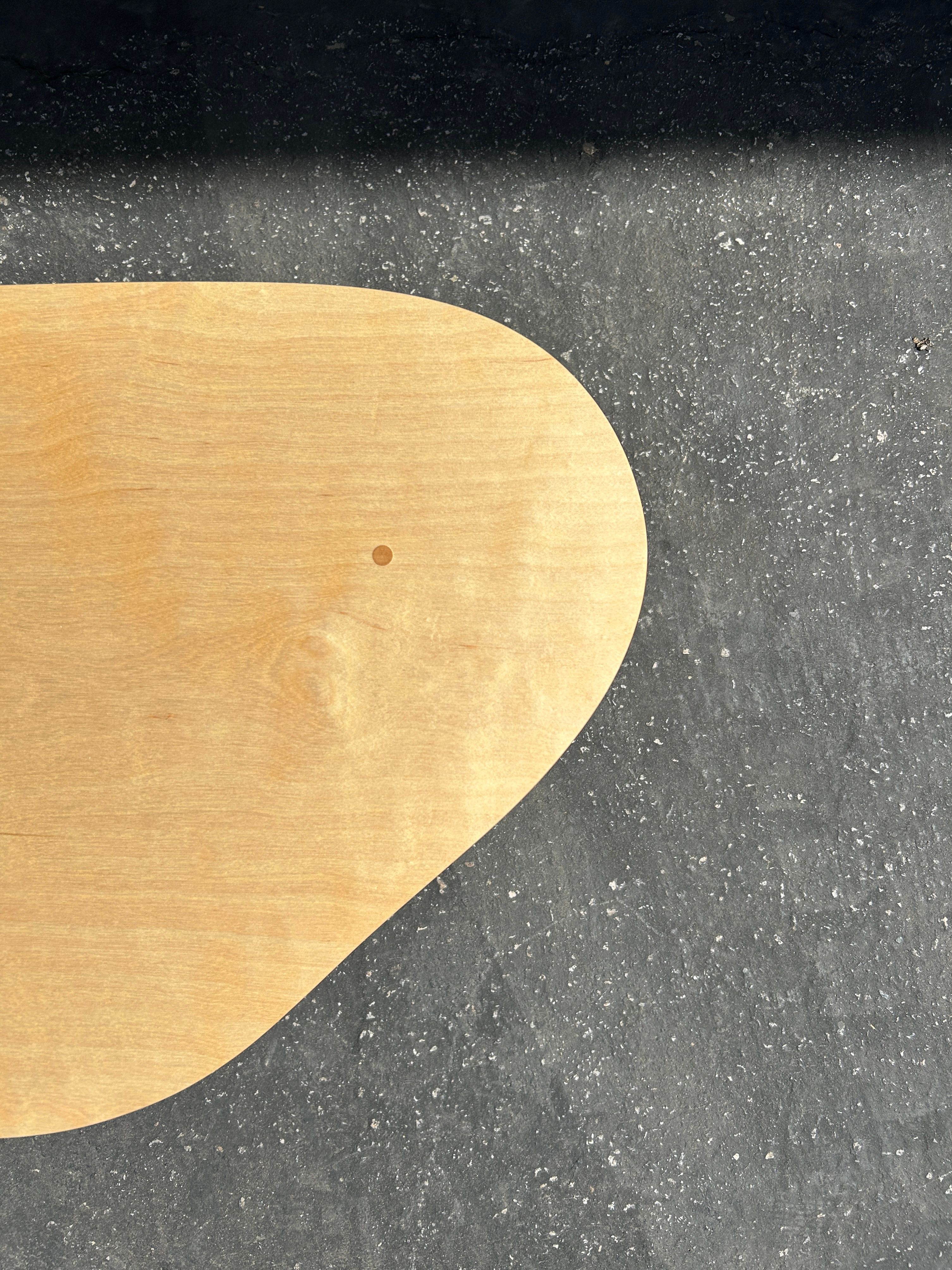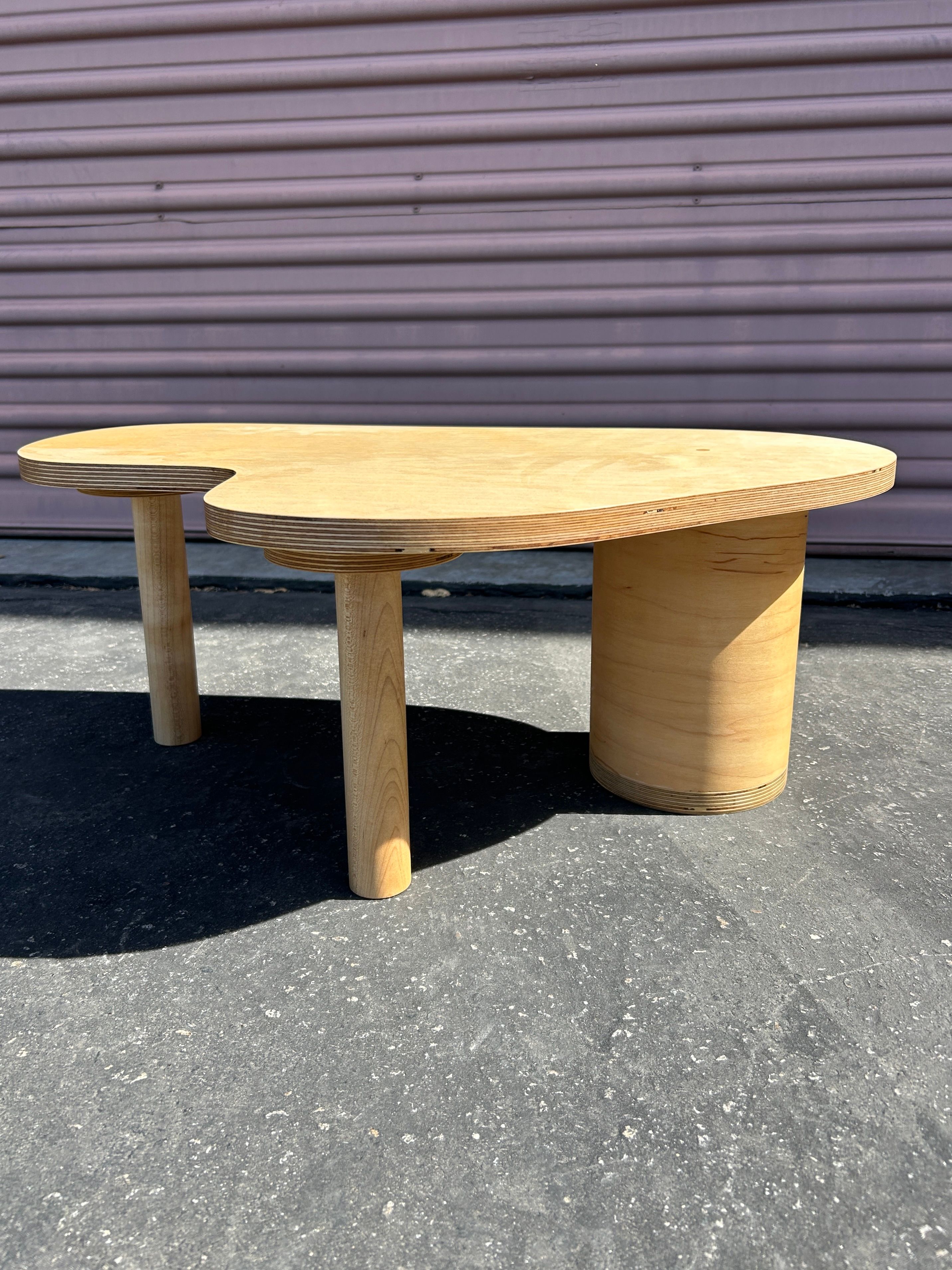 An amorphous puddle shaped coffee or side table, with an assortment of cylindrical legs. Made with baltic birch plywood. $550 Available for custom order after sold out - contact for purchase.